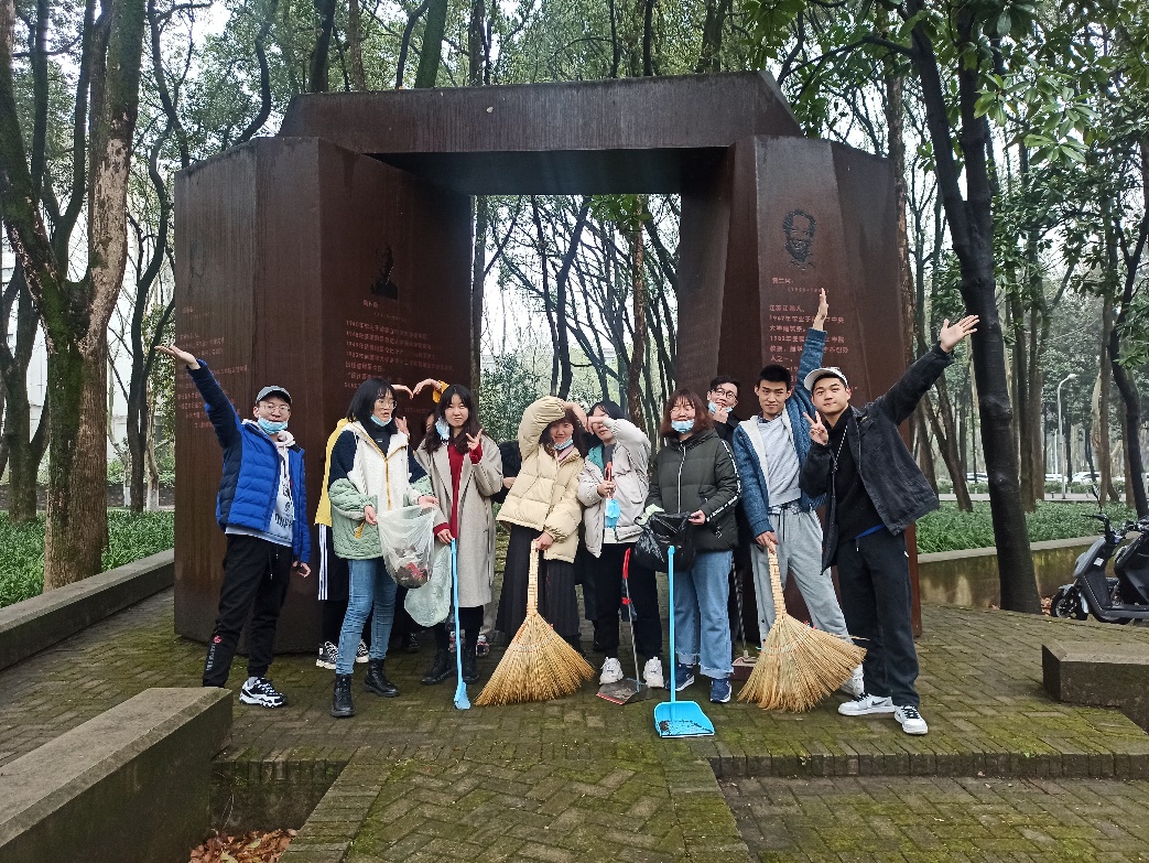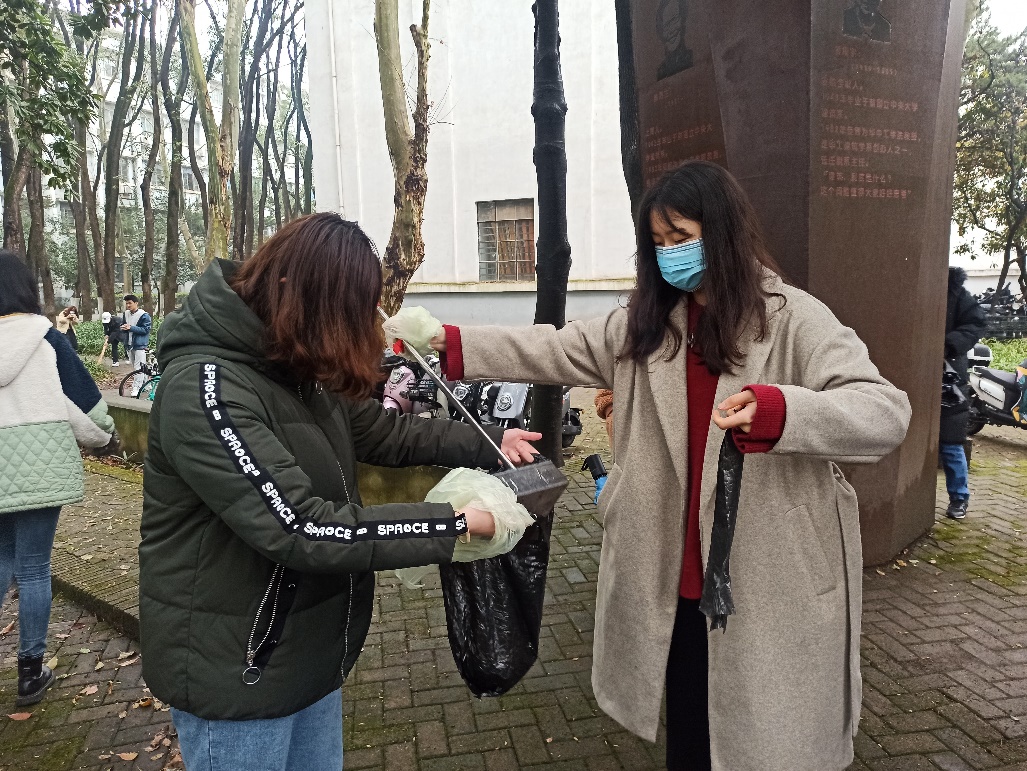 最后大家把垃圾倒在一个垃圾袋中,在花园前拍了合影。
