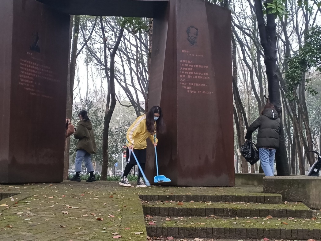 经过大约一小时的工作,原本落满枯叶的花园小路变得焕然一新,随处可见垃圾的草丛变得整洁干净,摆放杂乱的电车自行车变得整齐划一,原本已被落叶掩埋的雕塑也被打扫得干干净净。