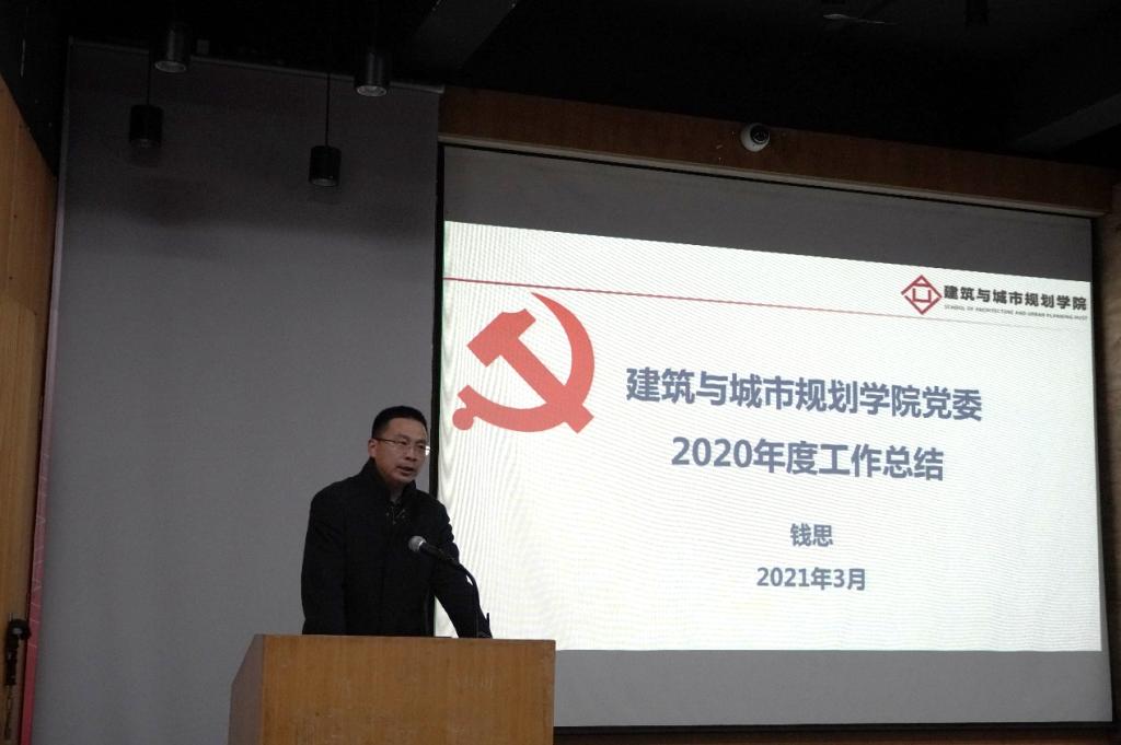 3月4日下午2:30,taptap点点体育2021年春季教职工大会在南四楼100报告厅召开,全院教职工参会,会议由党委书记钱思主持。