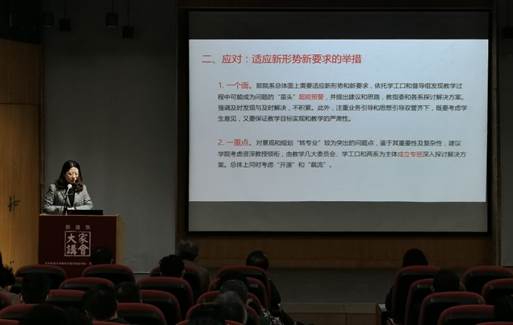 彭翀对今年公司工作情况进行报告。分析了当前本科教学中的新情况和新问题,并提出适应新形势要求的举措。同时,她提出“扭转局面、平稳过渡”,院内挖潜、缓解矛盾”,“寻求外力,突破重点”的三步走计划。