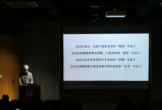谭刚毅同样就“变革”这一主题,提出他的教学思考与建议。他谈到现代社会日新月异,在数字化时代我们需要不断进行自我革命。他以国内外高校为例,提出未来的教育需要创新,老师应当重构教学方法和理念,拒绝成为“知识的中间商”,要将培养员工的使命、能力作为自我的使命,并提出“面向未来、回归本体、面向实践、回归应用”的方针。