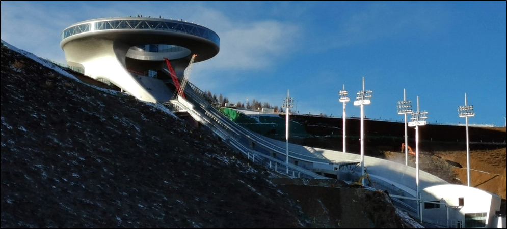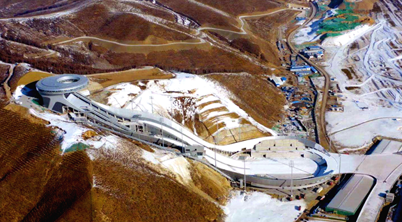 “雪如意”设计构思及建设中场景和建成后实景鸟瞰