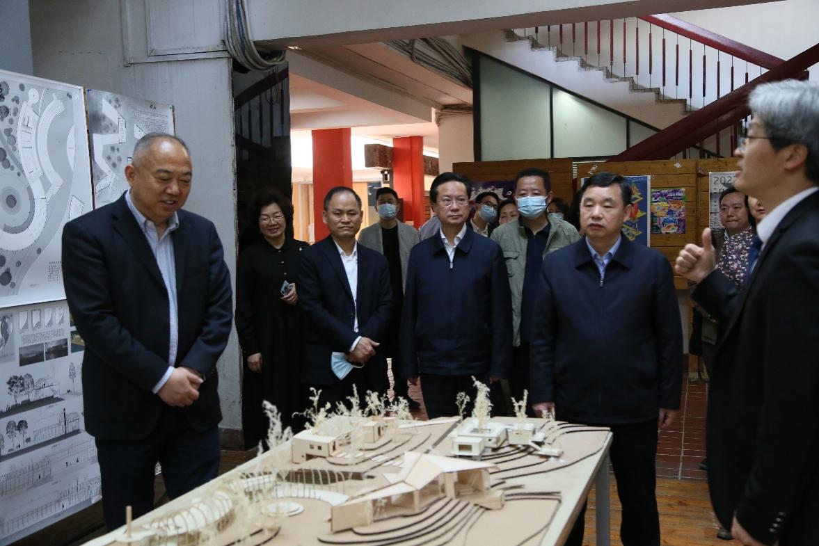 胡立山一行来到南四教学楼和新系馆参观了员工优秀建筑作品展,现场听取了关于公司公司产品和员工管理工作情况,并就公司未来学科发展与公司领导及各专业老师进行深入交流。