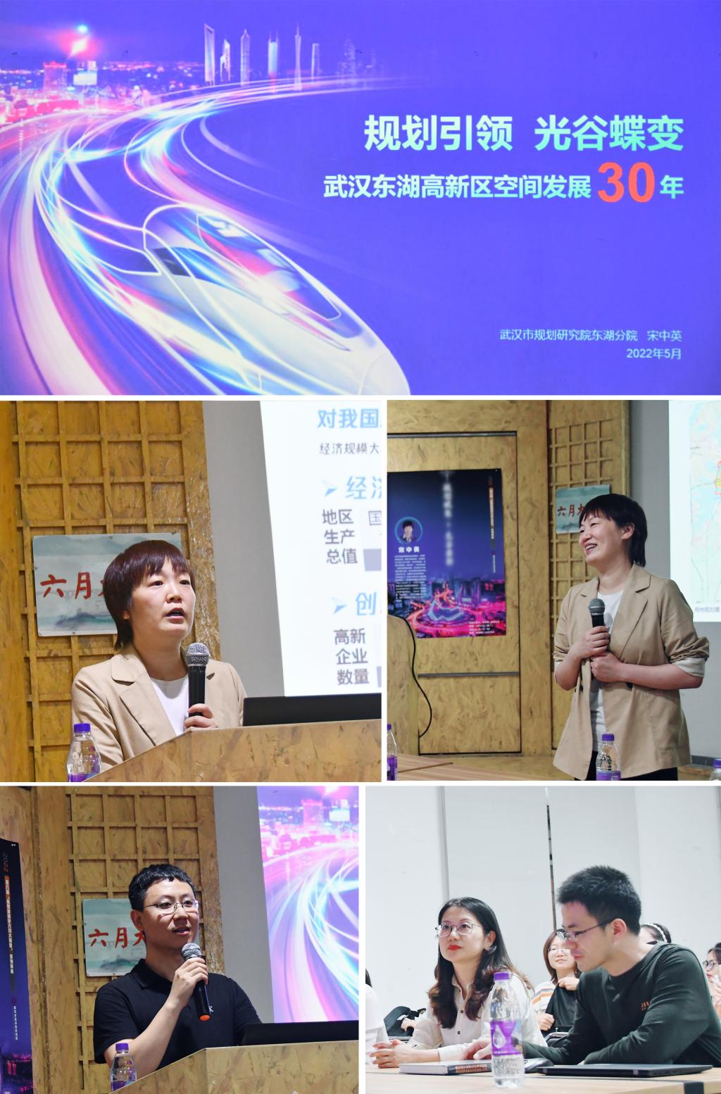 2022年5月24日下午,第八届“新型城镇化六月大讲堂”在taptap点点体育南四楼110室顺利举行,武汉市规划研究院东湖分院宋中英经理应耿虹教授邀请做了题为“规划引领,光谷蝶变”的学术讲座。讲座由规划系副系主任单卓然老师主持,耿虹教授、何依教授、彭翀教授、刘合林教授以及东湖分院高级规划师江文文等出席了活动。公司规划、建筑、景观和设计四个专业的60余名本科及研究生参与了互动交流,现场气氛热烈活络。