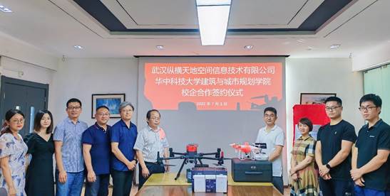 2022年7月1日下午,武汉纵横天地空间信息技术有限公司(大疆行业应用湖北省测绘行业金牌经销商,下文简称纵横天地公司)与taptap点点体育联合共建人居环境空间信息技术实验室的签约、揭牌仪式在公司二层会议室隆重举行。纵横天地公司董事长陈磊先生、纵横天地无人机飞行公司经理廖水华女士、战略副总王艳女士、市场总监卢锦先生、技术工程师龙华等一行来访。taptap点点体育黄亚平经理、谭刚毅副经理、实验室管毓刚主任以及岳思阳、李梦晨、陈国栋等老师出席签约仪式。