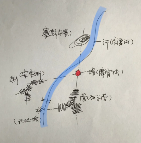 摩霄楼是泛博物馆范围内的重要建筑,楼名取自土家方言,有接近云天之意。摩霄楼坐落于距彭家寨1千米之外的汪家寨,该寨的功能定位是国际研学营地,而设计摩霄楼目的有三:首先,设计希望创造一个可在空中观察彭家寨的高视点,在此,观者会产生与寨中完全不同的视觉体验。观者在彭家寨中体验的是局部微空间和建筑细部,而在摩霄楼上则可以清晰地识别土家族传统聚落的整体格局;其二,水畔建塔可以为滨水的、水平延展的建筑群落创造丰富的空间轮廓;其三,可以为整个景区和自由布局的研学建筑群设立有利于空间识别的标志物。