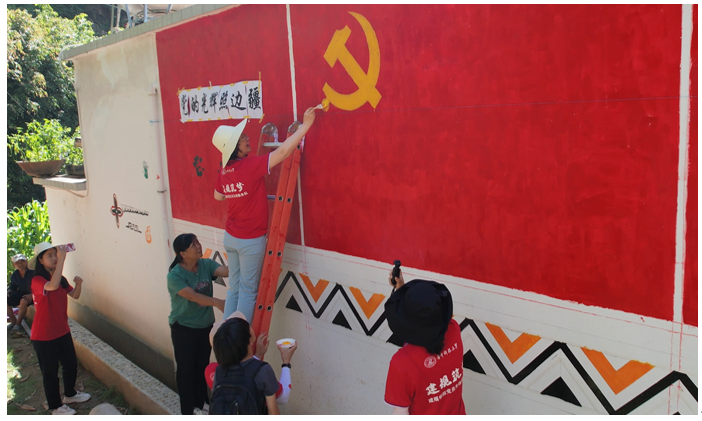 2022年7月27日,龙洞拉祜族文化艺术手绘亲子研学实验活动正式开启。陈锦富教授介绍了此次实验活动的主题是“党的光辉照边疆,边疆人民心向党”,以“推动脱贫攻坚与乡村振兴无缝衔接,助力教育部双减政策落实,培育亲子研学教育服务产业”为目标。通过村民、家长、中小员工,和taptap点点体育师生一起共绘党旗,共叙拉祜族民族特色,同唱一首歌等系列活动,共同铸牢中华民族共同体意识,助推蚂蚁堆亲子研学旅游产业上风口。