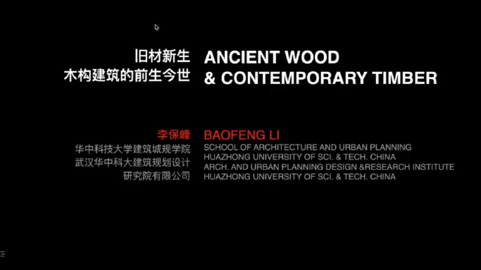下午14时30分,由李保峰教授主讲的“旧材新生—木构建筑的前生今世”主题学术讲座正式开始。目前,我国正全面贯彻新发展理念,提出了分别于2030、2060年实现碳达峰、碳中和的目标,建筑作为其中影响较大的因素之一,如何思考与实践是建筑师们需要面对的难题。对此,李老师从木材与木构提出了自身的看法,他从中国政府庄严承诺、从环保角度看建材、传统木构的局限性、关于真实性的命题、当代木构发展状况、宣恩低碳建造实践六个方面进行阐述。李老师认为,环保是当下所追求与倡导的,但自然状态被人工状态取代、资源的变形和挪移是一种难以避免的趋势,建筑师能做的便是减少建造对自然带来的破坏这种必要的“恶”,木构这种具有低碳环保可持续发展的建造方式,能够适用于自然景区、特殊地区等,但无法完全成为主流,低碳建造还需广大建筑师与学子们进行更为广泛而深刻的思考。