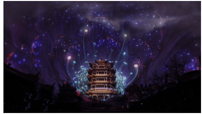经过一个多月紧锣密鼓的制作,终于打造出这场衔接武汉与临沧的艺术光影秀。灯光与投影交织,三维特效数字内容与体育馆花瓣般的立体结构交融,辉映着这座城市的活力、实力与魅力。