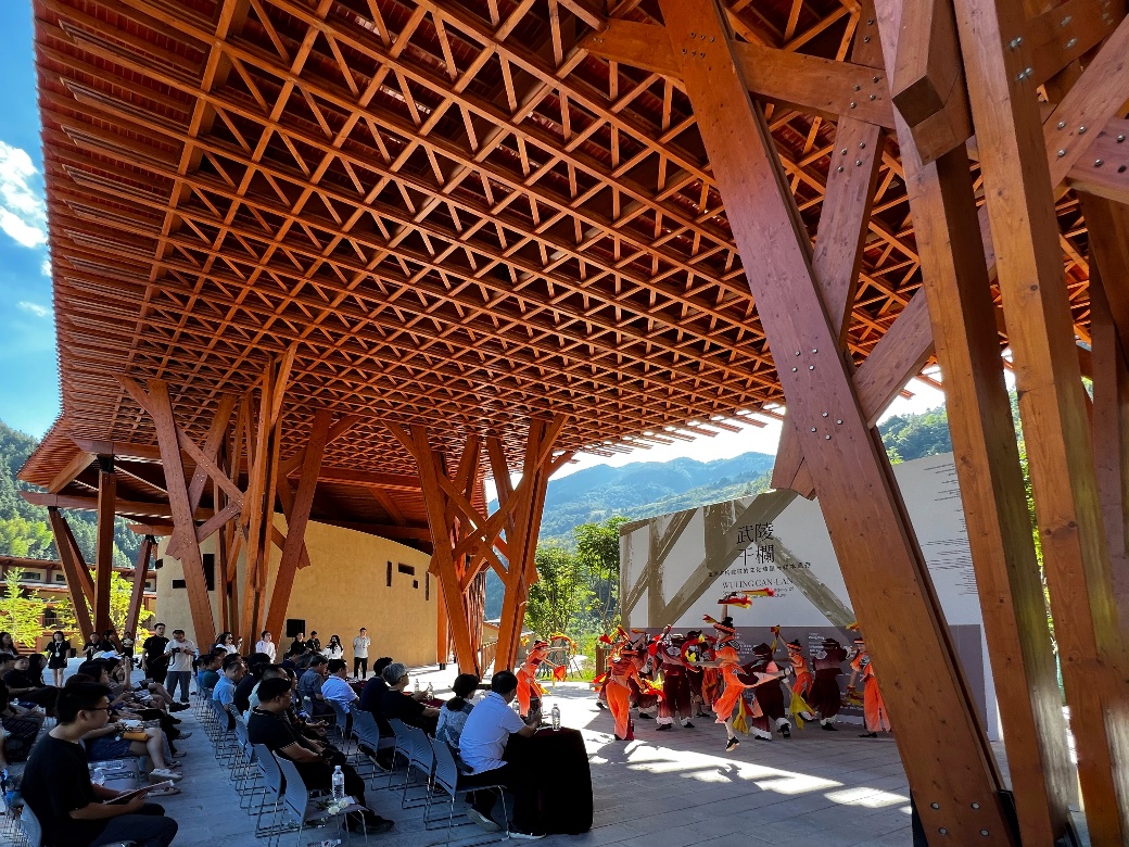 在湖北宣恩的建造实践中,为了减少对自然的扰动,李保峰及团队从材料的低碳环保性入手,使用全自然的木材作为建构材料。同时使用数字技术,将建筑设计、施工和建造有机高效率地结合在一起。用当代木结构展示时代精神和场所精神,传承和发扬了土家族敬畏自然的价值观和因地制宜的建造智慧。