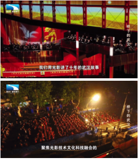 2020年的昙花林灯光秀,通过投影、LED等等先进的数字媒体技术和装备,将英雄武汉、英雄人民的精神,透过数字影像的方式做了很好的呈现。10月1号当晚,央视新闻联播作出了相关报道