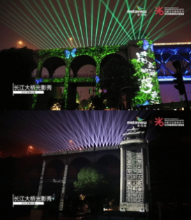 蔡新元教授团队最早在2013年在江汉关上做了全国第一场城市灯光秀。整场3D光影秀,投影面积达7000平方米,以“最大规模、最短筹备时间、最丰富内容”,充分体现了独特创意、技术创新以及文化与科技的融合。
