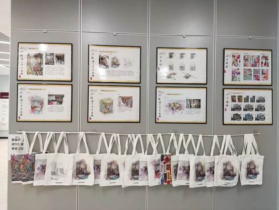 “环艺篇”作为最具个性的部分,将小河之美用潮流的表现手法重新展现在大家面前。抬头望去,一张张小河拼布,或碎花拼接,或书法集合,或儿童手绘拼合,悬挂于展厅的中庭上。同时展陈的还有活态店铺水彩写生作品以及基于写生作品制成的小河文创周边,将小河之美用当下流行的方式进行再创作。另外,展览结合主题,将小河八景用当地特色剪纸辅以当地特有竹篾,以堆叠的方式进行展陈。