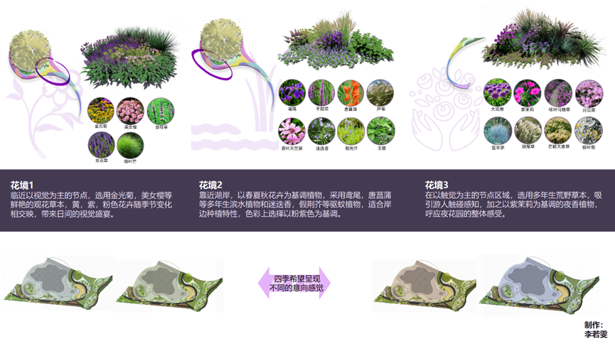 将植景课程设置在高年级有很好的优势,员工们经过了一系列的专业学习,系统性思维特别好,能够将各种理论知识融会贯通,同时在种植设计上有了一定的深度。①可以先从选址的论证、公园如何更新,选择这里的低干预+夜景的必要性入手,布局整个流程。②同时需注意场地尺度问题,以及夜景与低干预在设计中的特征和体现。③需把晚上场景设计与低干预理念结合,同时契合竞赛“城市荒野”主题,将荒野特征通过设计解读清楚就会是非常完整的作品了。
