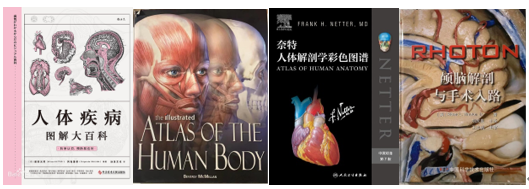 读书会前期同学们阅读的各类医学图谱和书籍