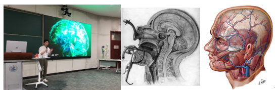 其次周老师以奈特为代表的传统医学美术与新时代医疗美术做比较,分析现代医学美术中对于传统医学美术的批判和继承,以及新时代科技对医学美术的诠释,周老师用两个回路呈现,给我们打开了一扇重新认知生命的窗口。