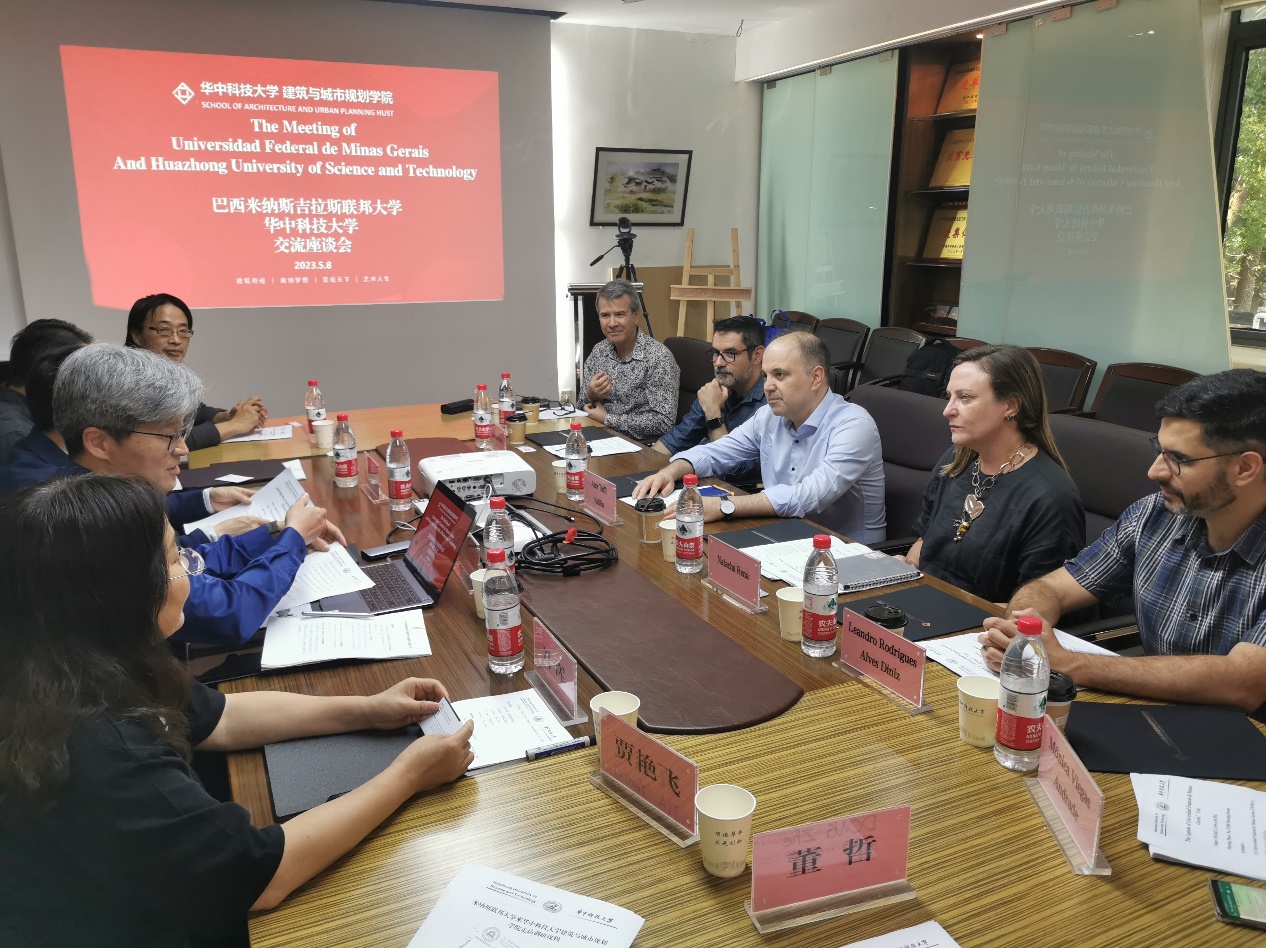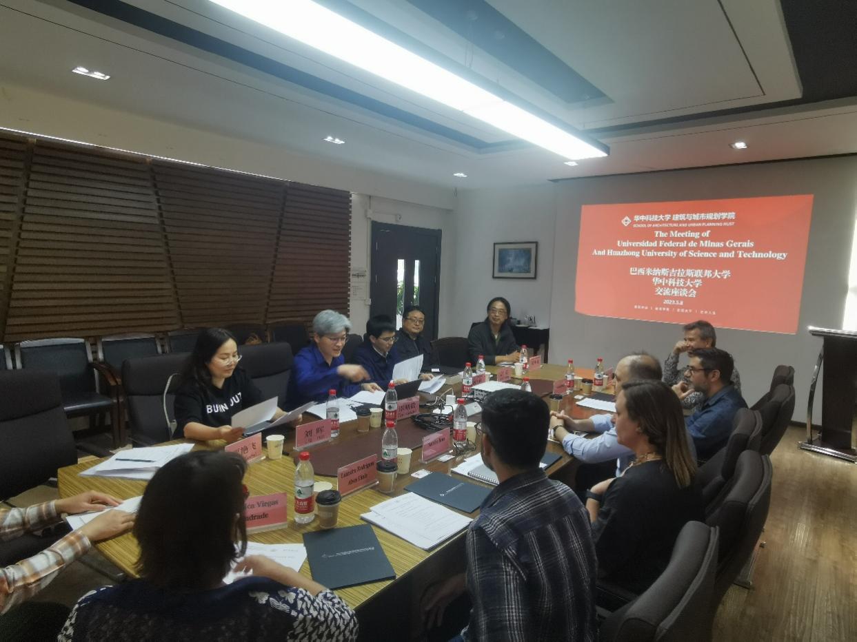 由米大国际交流处处长Aziz Tuffi Saliba教授领衔,建筑公司Natacha Rena教授、Marcelo Maia教授、经济公司教授Mônica Viegas Andrade(写全吧)等一行六人与会,公司副经理谭刚毅教授、建筑学系系主任刘晖副教授和副系主任刘小虎教授,城市规划系系主任刘合林教授和副系主任贺慧教授,城市规划系郭亮教授、建筑学系贾艳飞副教授、董哲老师等教师参会。