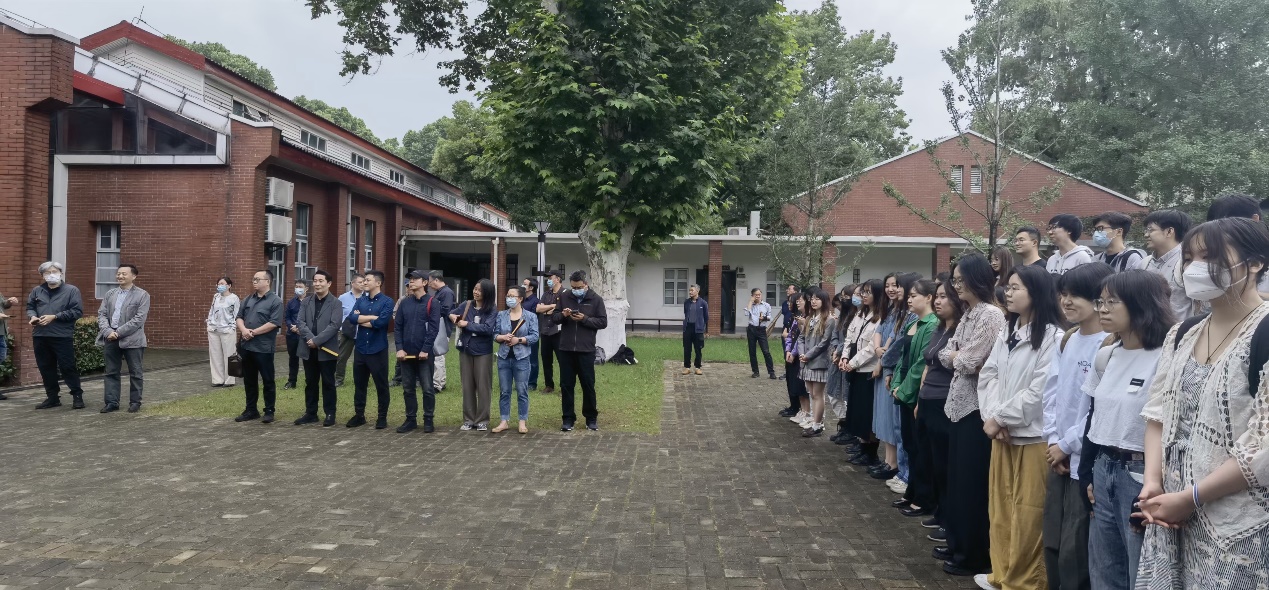 8:30,答辩评委陆续抵达答辩现场,在前言展板上签到留言。在正式答辩开始前,由建筑系毕业设计负责人管毓刚老师主持举行了一个简短而有仪式感的开幕式,首先向大家隆重介绍了外邀嘉宾,分别是美国保陵格林州立大学建筑与环境系教授范思正、北京市建筑设计研究院有限公司副总建筑师王小工、中国中元国际工程有限公司执行总建筑师陈自明、哈尔滨工业大学建筑公司教授陆诗亮、华阳国际工程设计(武汉)有限公司总经理陶冶以及中南建筑设计院股份有限公司副总建筑师姚欣。然后建筑系系主任刘晖老师向远道而来的嘉宾们表示热烈的欢迎,向今天前来参与毕业答辩的所有的老师们表示感谢,向同学们即将完成本科阶段的学习表示祝贺。随后毕业设计指导教师代表白晓霞老师和员工代表徐耀新同学分别进行了精彩的发言,最后,公司党委书记李小红进行了总结,期待毕业设计答辩圆满成功。随后全体参与答辩的教师和员工们进行了合影留念。