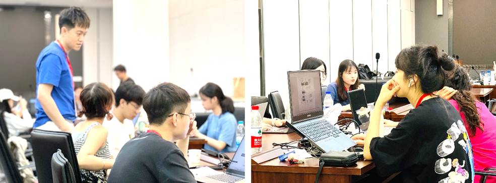 7月9日和10日,同学们在南四楼S101进行分组工作。基于场地调研的结果,每组同学都有其独特的着眼点。同学们学习香港和其他地方的相似案例,互相交流对东头村更新设计的想法,老师们和同学们相互讨论、互相交流,每个小组都有自己独特的见解,每位同学都在为了自己的团队而努力。