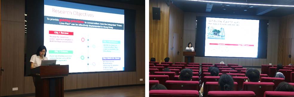 香港理工大学建筑及房地产学系副教授容晓君围绕香港历史建筑保护研究项目,做了Examining the Implementation of the Point-Line-Plane Conservation Approach in a Dense Urban City的报告。容博士从研究的课题来源和选题背景、研究意义、研究目标、研究方法、文献、结论和验证、应用建议等全过程进行了分享。
