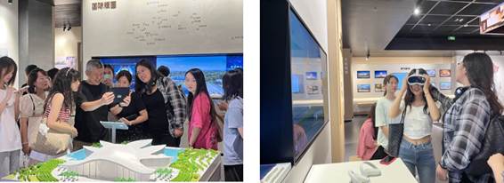 大家继续前进,通过观看建筑模型,VR项目互动等形式对中南院的发展历程有了更具像化的了解:凝聚了工匠巧思的黄鹤楼建筑模型让同学们赞叹不已;深圳国贸大厦的建筑方案让同学们深感敬佩;包括雷神山医院在内的抗疫医院设计方案让大家感动。在交谈学习的活泼氛围里,同学们更加深入地了解了中南院辛勤付出的奋斗历程。