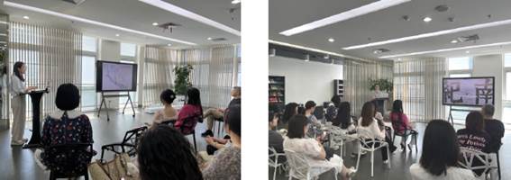 之后宋怡萱学姐从遗址保护的角度详细的介绍了纪南古城项目中的设计策略。学姐以节点设计为例,生动展示了如何运用设计的手法保护文化传承文化,同学们获益良多。