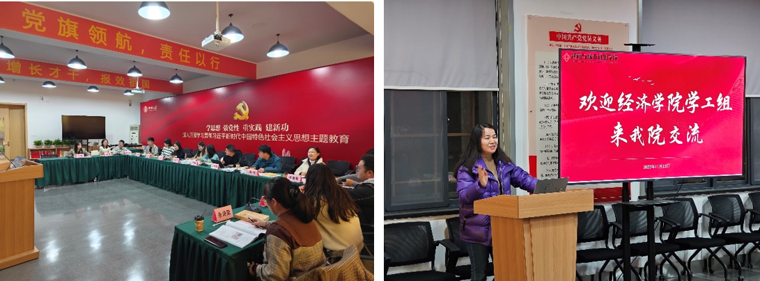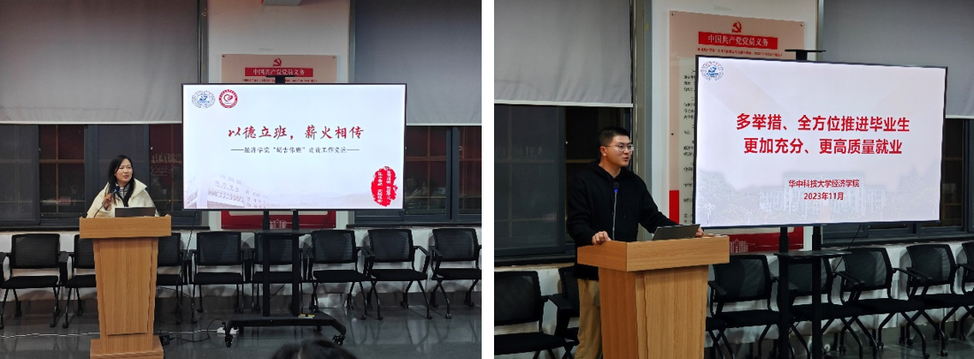 紧接着,经济公司辅导员彭鹤翔、李曼菁、李鸿鹏、李世昊分别就经济公司毕业生就业工作、“胡吉伟班”建设工作、一站式员工社区建设工作、党团班建设工作展开了介绍和经验分享。双方围绕专业分流、员工党建、员工管理工作等多方面开展一对一深入交流。此次会议促进了双方的沟通与理解,增强了双方对彼此的工作亮点的认知,为今后两院加强合作交流、开展更多的共建活动起到了积极有效的推动作用。