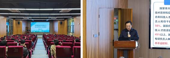 刘伟副经理对现阶段科技人才形势与资助体系、国家自然科学基金申报、科学技术奖励工作等方面进行说明。刘伟强调我国当代青年科技人才的职业生涯与到本世纪中叶全面建成社会主义现代化强国的时间高度契合,望公司科研人员应积极申报基金和人才项目。