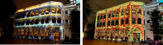实验室基于Deforum生成的3D Mapping作品《亘·四季》在2023澳门光影节“幻彩耀濠江”活动中荣获一等奖并进行了实地展播。该作品的影像、音乐及音效均运用AIGC技术生成,创新了光影秀内容制作全流程。