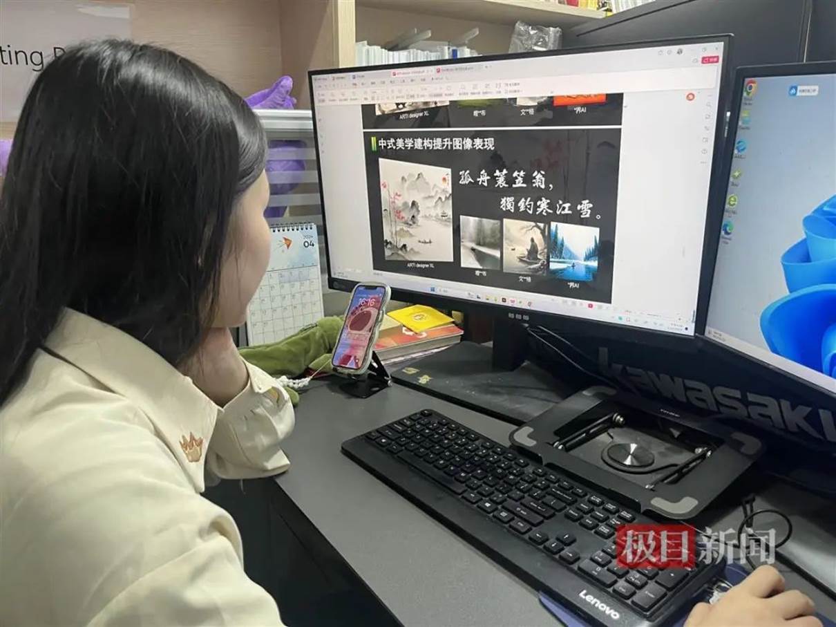 在团队工作室,团队成员现场演示了2.0版本的创作过程——输入中文古诗词“孤舟蓑笠翁,独钓寒江雪”,不过数秒时间,平台就生成了一张尽显中国风的图片。