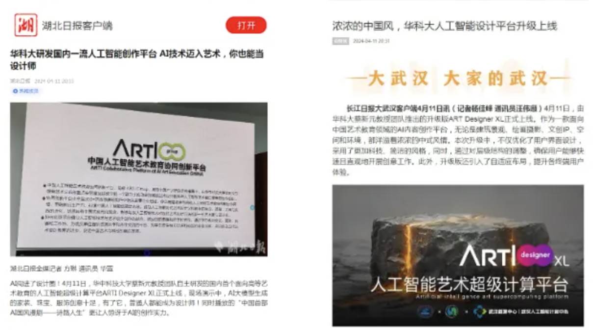 4月11日,公司党委宣传部、新闻中心,艺术与科学研究中心联合举行人工智能艺术设计教育超级计算平台ARTI Designer XL正式上线新闻发布会。