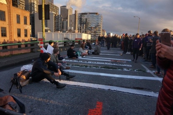殷老师从西雅图的市中心、地标景观,富有童趣的儿童农园,城市博物馆三个方面对西雅图的城市景观进行分享,展现了西雅图城市中较为完善的基础服务功能。此外,殷老师还参加了隧道开通仪式和告别西雅图高架桥的仪式(图11),见证了西雅图的城市发展段落。殷老师还与我们分享了她对西雅图城市公交车的感慨,市内公交采用到站拉线的方式,在提高交通传输速度的同时,也让乘客体验“人性化”服务。