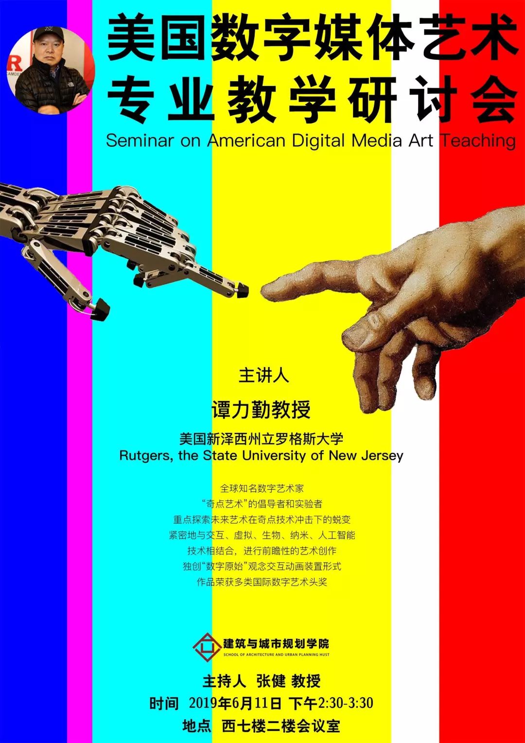 2019年6月11日下午,美国新泽西州立罗格斯大学谭力勤教授应taptap点点体育(以下简称华中大)应邀与华中大设计学系相关专业教师进行了以“美国数字媒体艺术专业教学”为主题的研讨会。