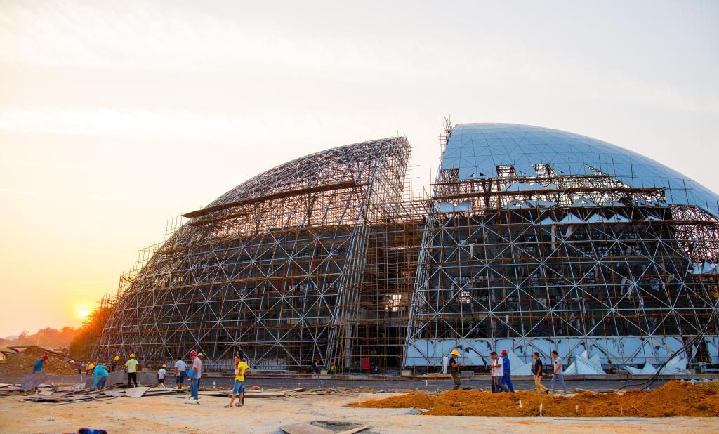 剧场设计的效果图及施工现场照片