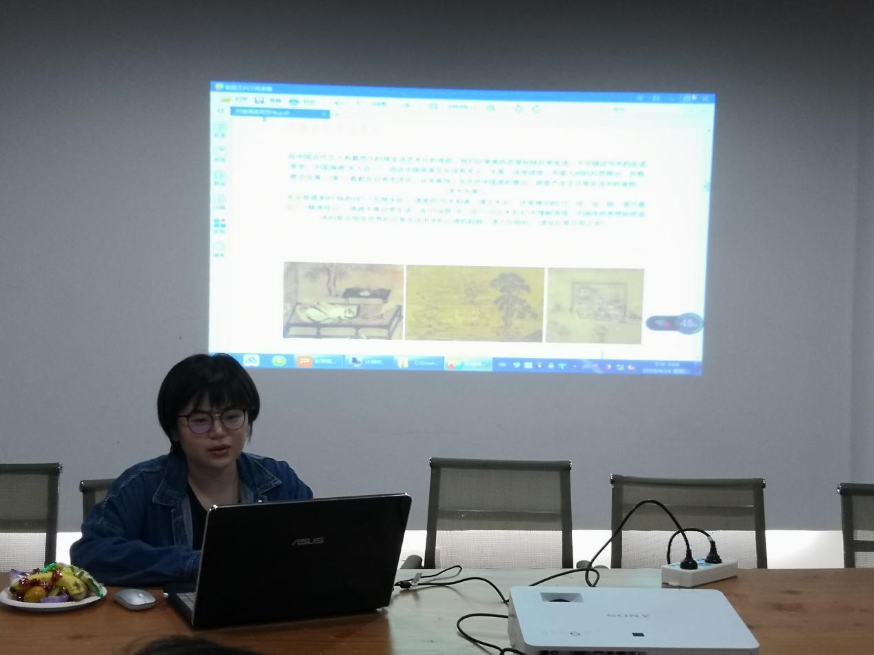 《闲情偶寄》是明末清初文人李渔的著作,共分词曲、演习、声容、居室、器玩、饮馔、种植、颐养八个部分,论及戏曲理论、妆饰打扮、园林建筑、器玩古董、饮食烹调、竹木花卉、养生医疗等诸多艺术与生活审美的问题,内容丰富,被誉为古代生活艺术大全,名列“中国名士八大奇著”之首。周思怡同学对作者和书籍概要进行了介绍,并从“生活美学”的角度解读了《闲情偶寄》及其与艺术设计的关系。