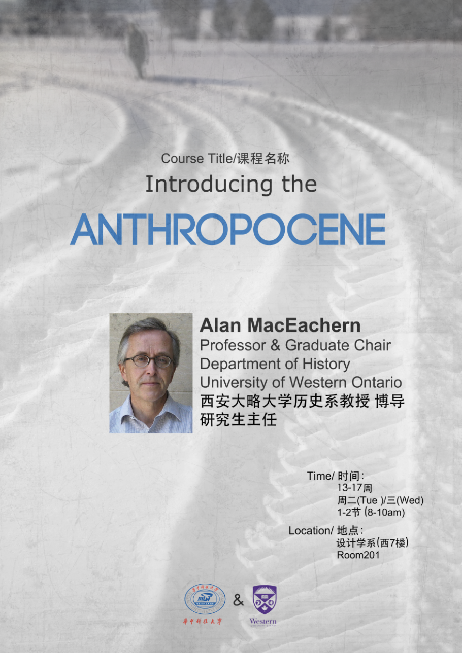 设计系于5月9日至6月7日邀请了加拿大西安大略大学历史系教授Alan MacEachern来我系讲授Introducing the Anthropocene(人类世概述)。MacEachern教授是加拿大“环境史官方网站(NiCHE)的创建人”,多年来在西方环境史,特别是北美及欧洲环境史、国家公园体系、方面有精深的研究,欢迎大家积极参与!。