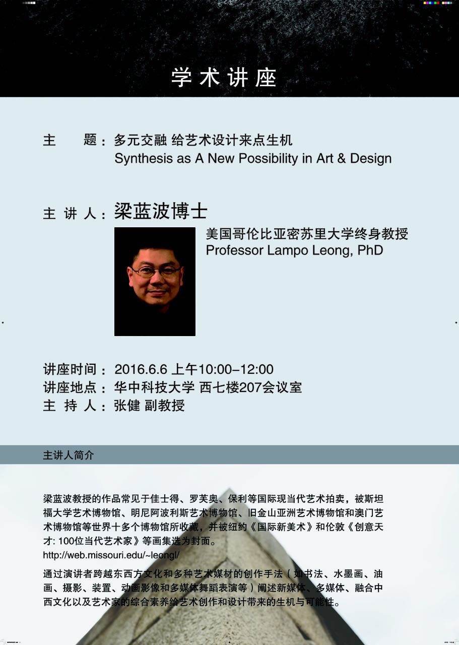 梁博士将运用跨越东西方文化和多种艺术媒体的创作手法,阐述新媒体、多媒体、融合中西文化以及艺术家的综合素养给艺术创作和设计带来的生机与可能性。