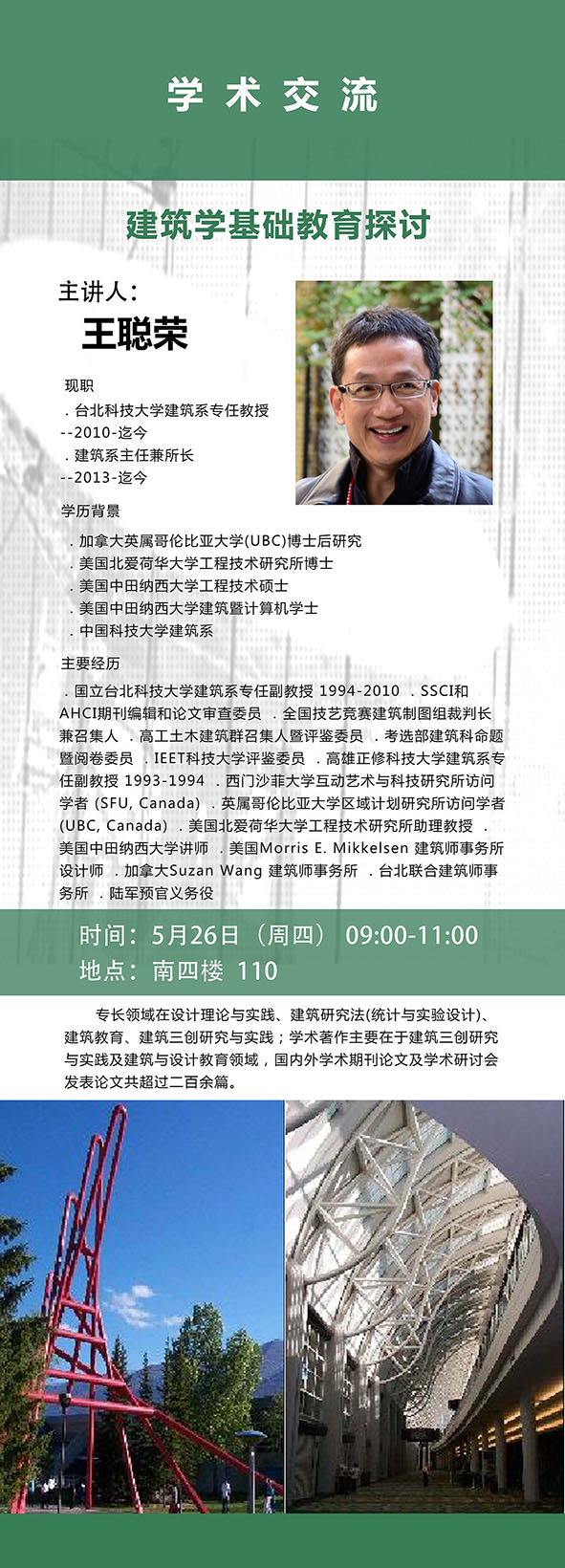 万里之行始于足下,千里之堤起于垒土。建筑学的基础应该怎么奠定,怎么教育建筑的员工,才能让他们更好的发展他们的才华、展现他们的智慧。台北科技大学王聪荣教授将和我们一起探讨。