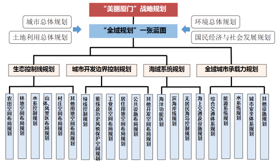在厘清“一张蓝图”内涵后,兰总重点介绍了厦门市构建的:以优化空间结构和实现空间治理为主要目标,形成以战略引领、融合城市总体规划、国民经济和社会发展规划、土地利用总体规划、环境总体规划等多部门空间性规划,形成以生态为本底、承载力为支撑基础,“3+1”全市域统一的空间规划体系,以及“市域、分区、单元”三个空间层级和“长期、近期、年度计划”三个层次的规划管控和实施体系,并详细解读了四大板块、八大系统的详细内容。总结了“一张蓝图”全域性、系统性、动态性、开放性的特点;分析了观念转变、协调和达成共识程序多和周期长、技术支撑、成果法定化等工作难点。