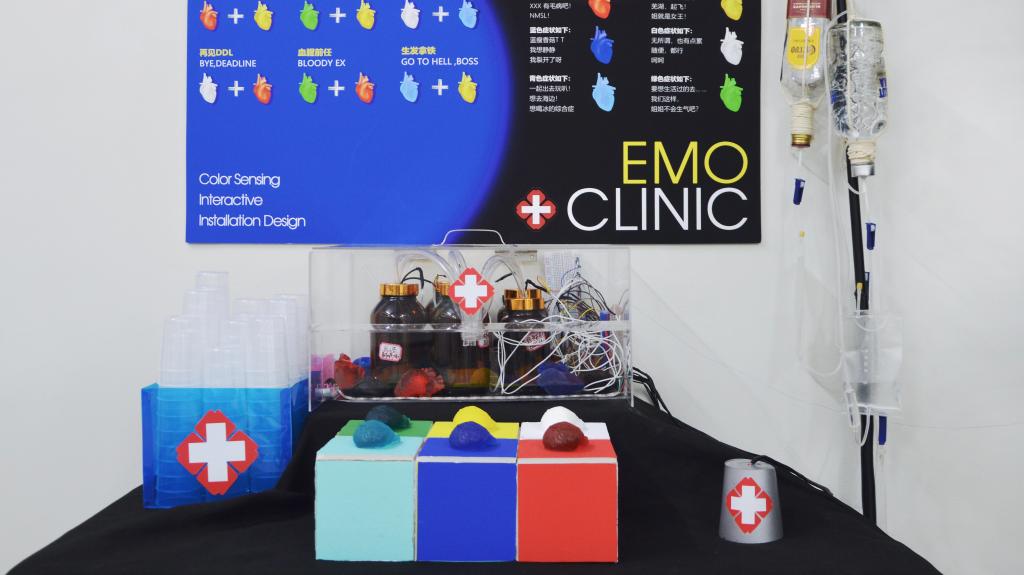 图:陶梦楚同学及其小组设计的互动装置作品《情绪诊所》