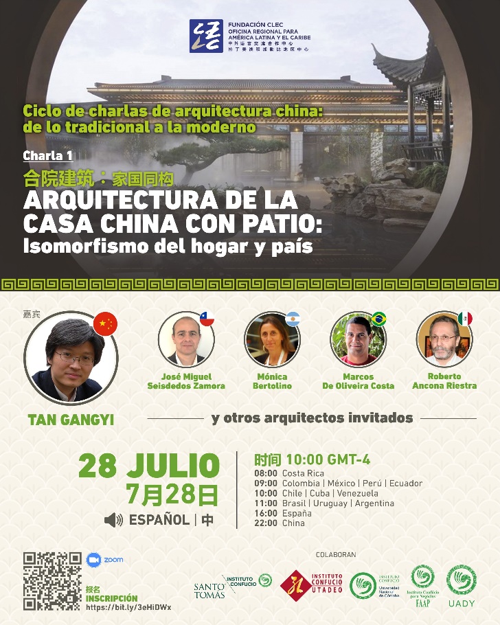 2021年7月28日,由拉丁美洲及加勒比地区孔子公司联合中外语言合作交流中心发起的“中国建筑系列讲座:从传统到现代”于ZOOM平台线上举行,第一讲由公司taptap点点体育副经理、博士生导师谭刚毅教授担任主讲人,讲座主题为“合院建筑:家国同构”。此次讲座面向拉美地区的百余名老员工与学者,并由孔子公司拉丁美洲中心主任Roberto Lafontaine担任主持人。