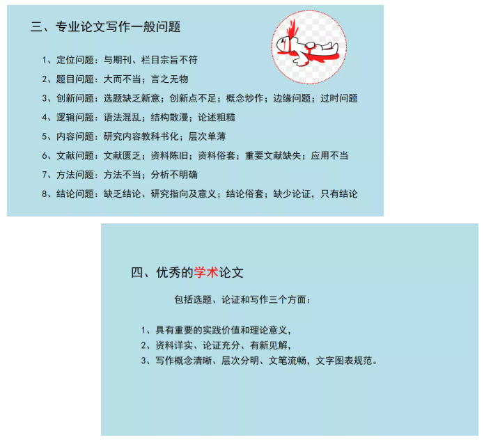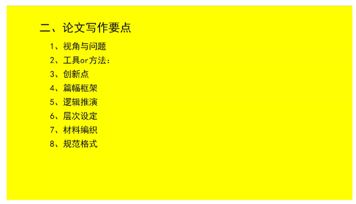 该部分,张教授为大家厘清了论文的写作逻辑和进行具体论文写作时要注意的诸要点,并就各要点进行了详细的讲解——总结何为论文的“学术味”。