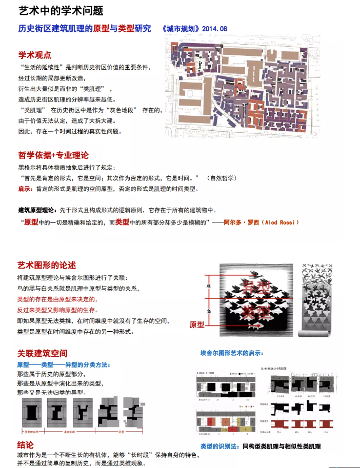 最后,何教授给大家用实际案例诠释了如何将跨学科的思想融入研究中去。她将建筑原型理论与埃舍尔图形进行了关联,用埃舍尔的画面中从鱼到鸟的图形变换解释了建筑中原型,类型和异型的关系。