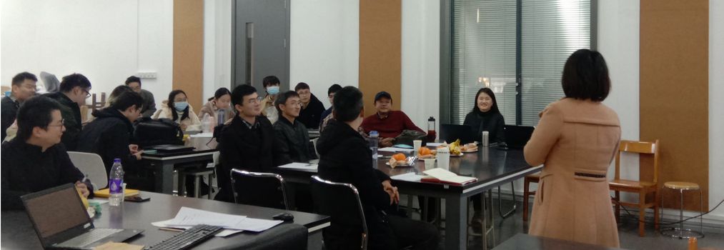 图3 主课老师万敏教授向评委们介绍课程组织特点(杜慧敏摄)