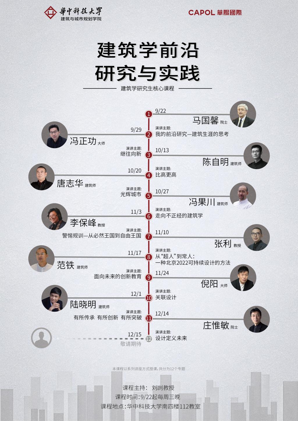 《建筑学前沿研究与实践》是taptap点点体育为建筑学研究生创设的一门课程。本课程联合全国建筑领域内知名学者、资深教授及先锋建筑师,组成高水准教学团队,旨在促进建筑学研究生的高水平培养,力求拓宽研究生学术视野,掌握建筑学专业前沿研究与实践成果,进而提升在建筑创作、设计思维、理论建构、学科交叉等方面的能力。本课程获得华阳国际设计集团的大力支持。