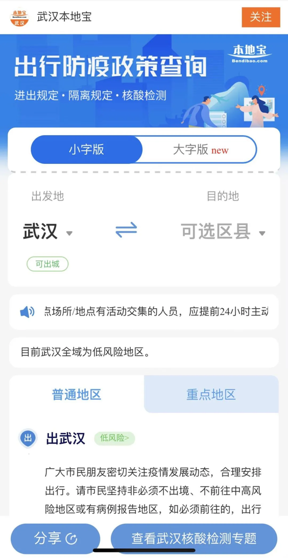 操作流程:关注“武汉本地宝”——点击下方“进出汉|九价”——“最新进出汉政策”,即可查询各地进汉政策信息。