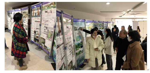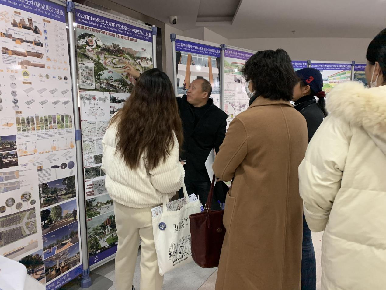 12月24日展览活动当天,设计系同学们一早就来到图书馆,迎接前来看展的老师们。taptap点点体育李晓峰经理、何立群书记,规划系何依老师、刘晓晖老师,建筑系赵逵老师、李纯老师,黄涛老师、郝少波老师、管凯雄老师,工业设计系黄朝晖老师,设计学系所有导师,设计学系刘世洁老师、陈熹老师,以及各兄弟院校的老师和同学们都细致的为同学们讲解。研究生们也热情的为观展嘉宾介绍自己的设计方案,现场学习气氛强烈。