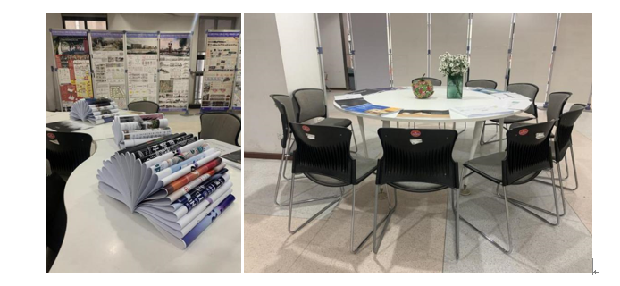 2021年12月23日,在任康丽老师、汪浩老师、尚磊老师的指导下,同学们全情投入于布展的准备工作。除了同学们的展板和图册外,为了布置出一个清新、舒适的观展环境,展厅内还放置了植物盆栽、插花装饰,水果茶点,小饰品等。