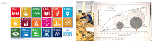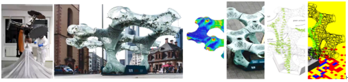 博士在读的他经历了从设计学习转入技术研究的过程。舒学长分享了他现在的研究,利用数字化建模技术,尝试在城市街道、广场缺少绿化、遮阴的空间中,通过数字建模,搭建“立体树”模型,并尝试结合绿化种植,改善局部微气候的做法。(图6)