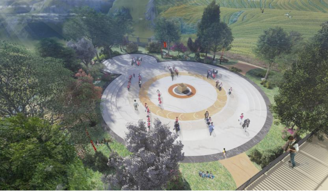 本次实践分别从公共空间的形式、道路空间、活动空间、绿化空间、公共基础设施五个部分进行设计。为乡村老年人提供安全便利的道路空间、功能丰富的活动空间、健康舒适的植物景观、统一适宜的公共设施,提高乡村老年人生活质量。根据乡村特征及老年人活动需求,本次设计以居住组团为辐射圈向中心聚焦,以两百米为半径的中心区域作为主要的活动空间,其他区域则主要对道路、绿化进行设计,以此提高整体环境氛围。